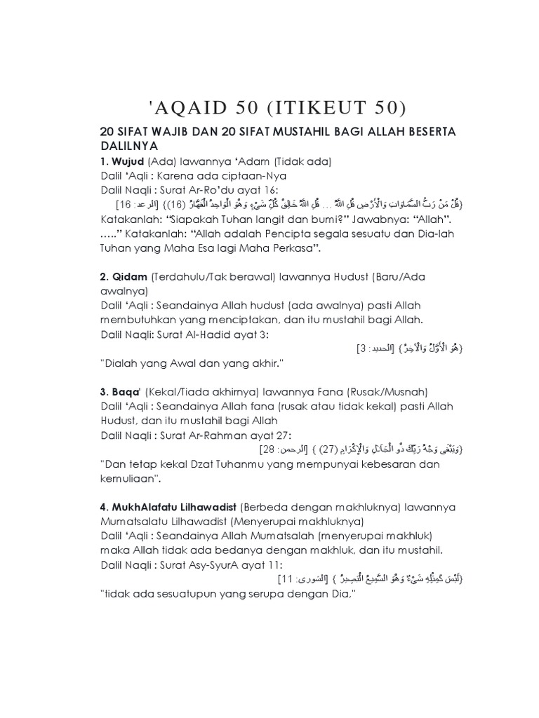 Doc Sifat Wajib Allah Dan 20 Sifat Mustahil Allah Reza Rahmatillah Academia Edu