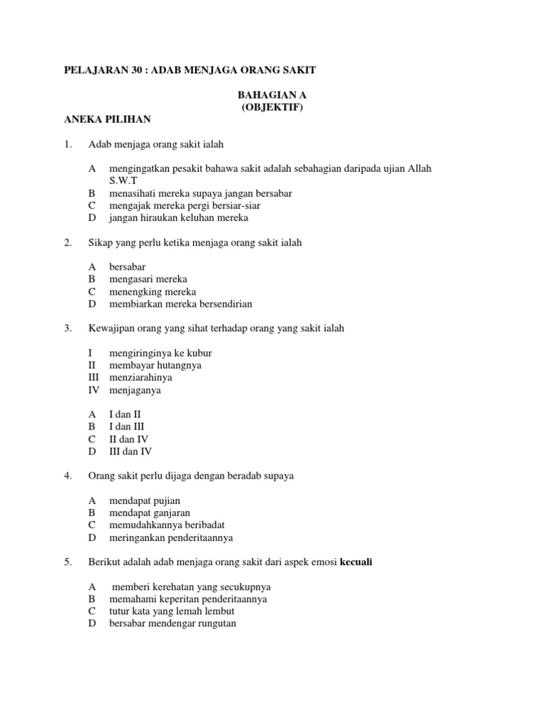 Adab Terhadap Orang Sakit Dan Kurang Upaya Lessons Tes Teach