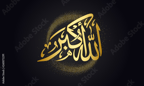 Premium Vector Arabic Calligraphy Of Allah Is The Greatest With Crescent Moon