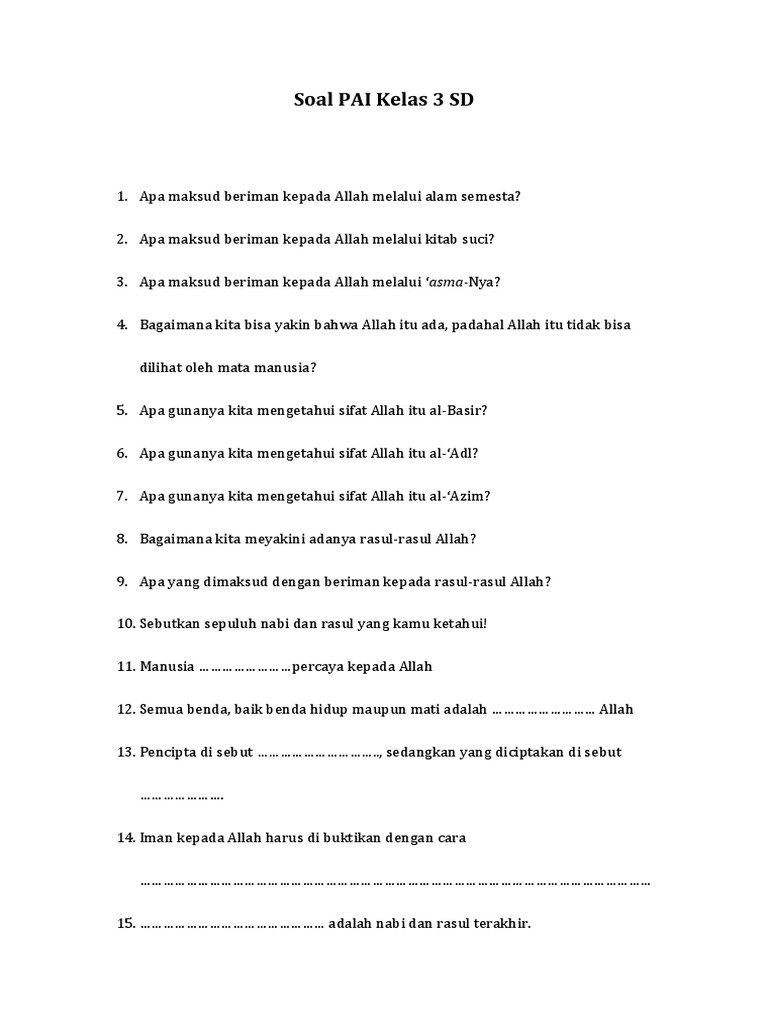 Soal Pai Kelas 3 Sd