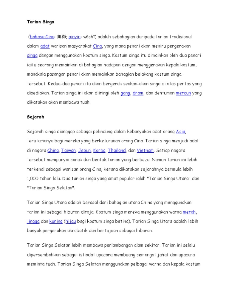 Asal Usul Tarian Singa The Patriots