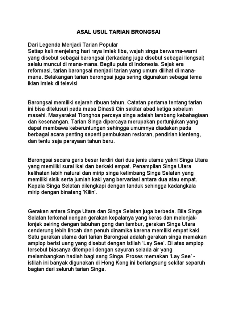 Asal Usul Tarian Brongsai