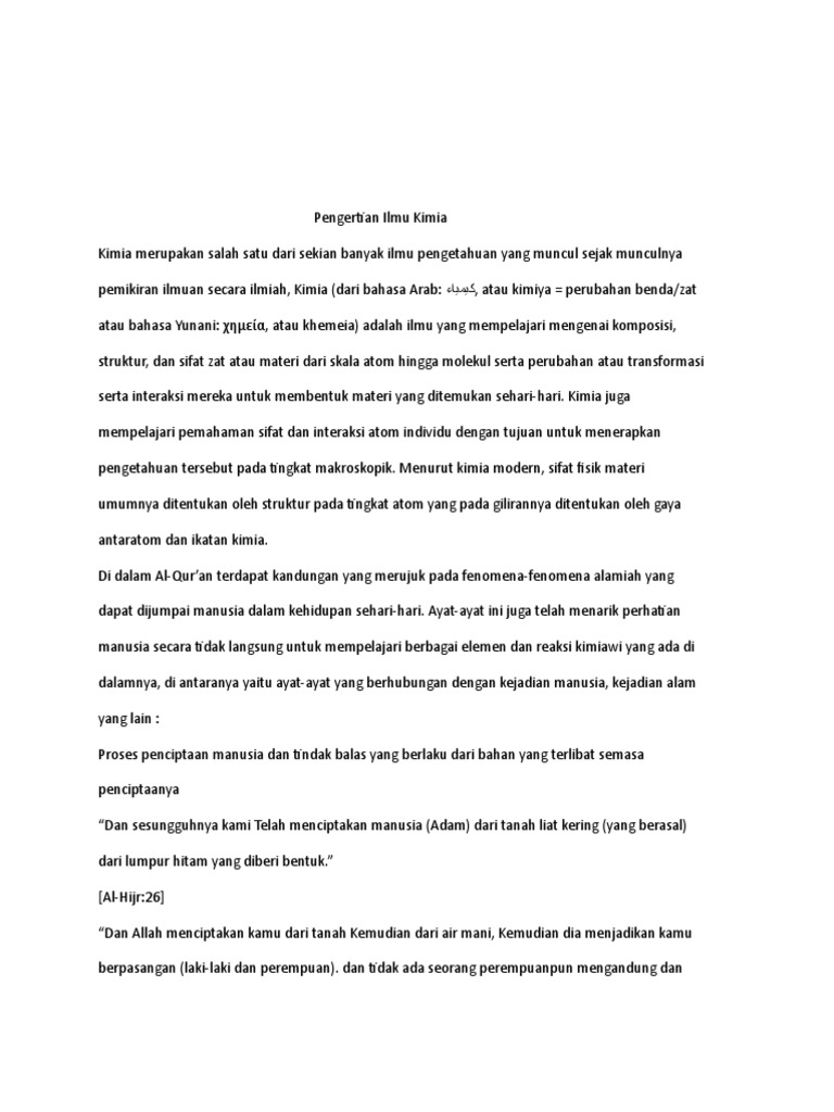 Hubungan Al Qur An Dengan Ilmu Pengetahuan Kimia