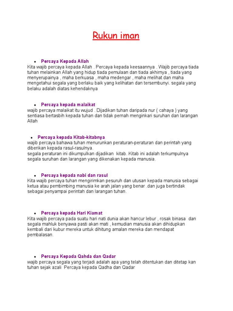 Mengenal Rukun Iman Untuk Anak Disiplin Anak Iman Belajar