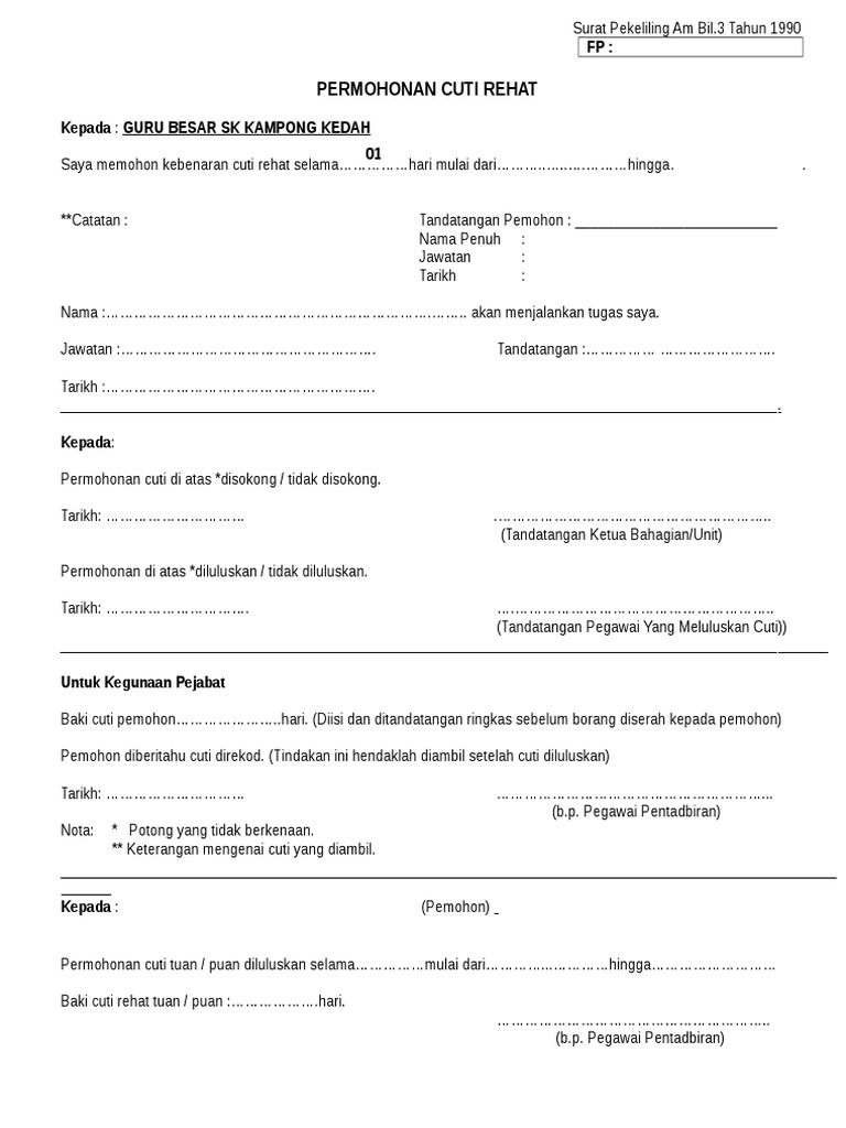 Surat Permohonan Cuti Rehat J Kosong T