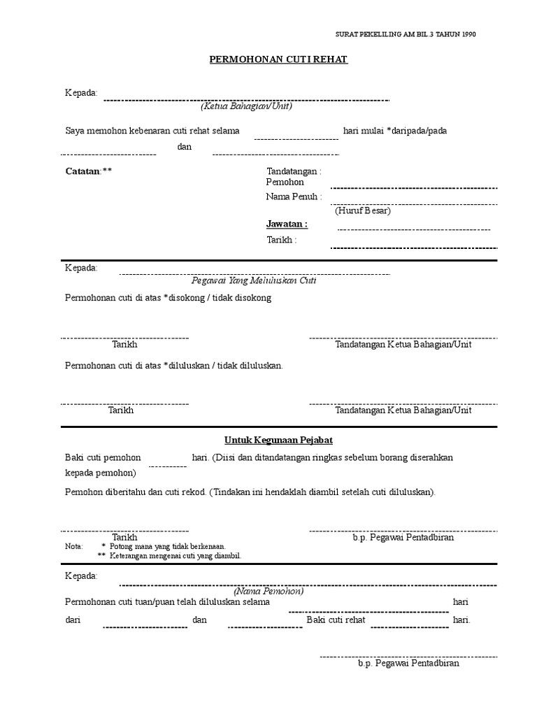Contoh Borang Permohonan Cuti Rehat Khas