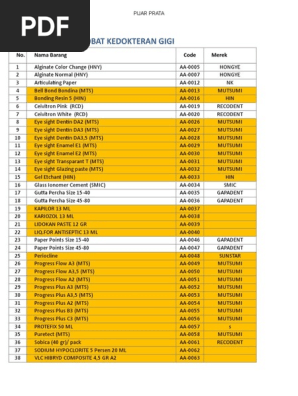 Price List All Product Jan 2016 Cabang 1 Mkt Dentistry Branches Materials