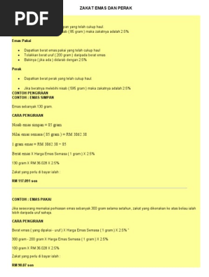 Cara Pengiraan Zakat Emas Dan Perak