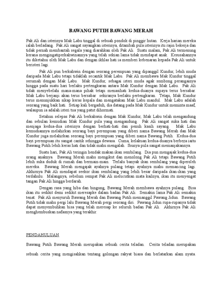 Sastera Rakyat Sinopsis Bawang Merah Bawang Putih Pak Facebook