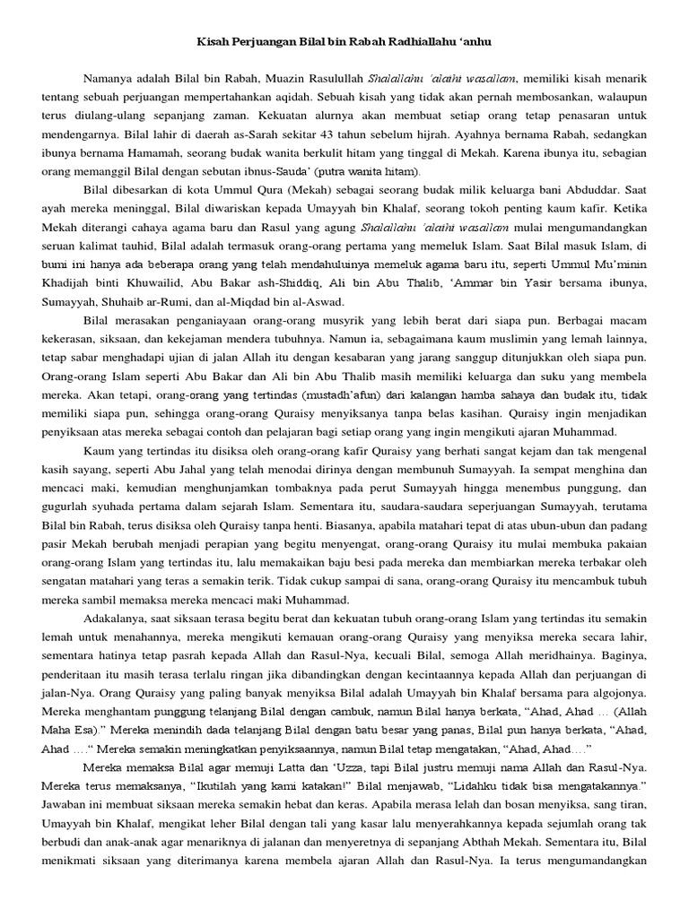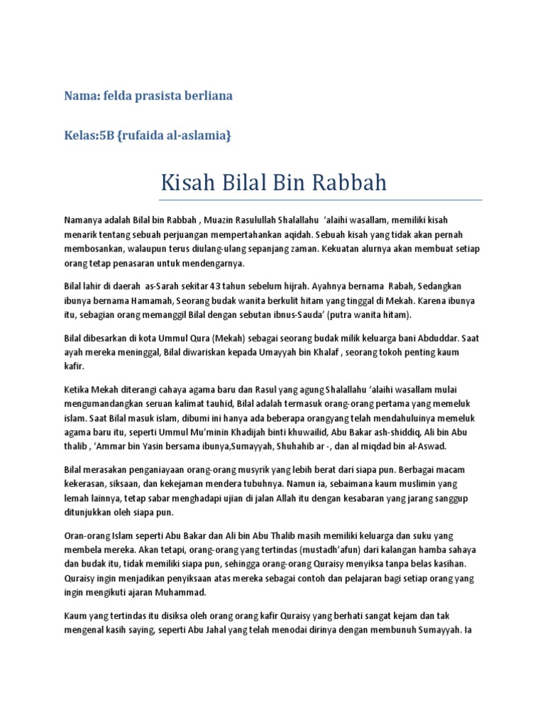 Kisah Bilal Bin Rabbah Nama Felda Prasista Berliana Kelas 5b Rufaida Al Aslamia