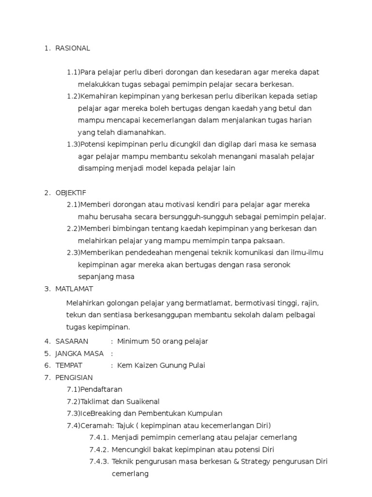 Contoh Kertas Kerja Kursus Kecemerlangan Diri