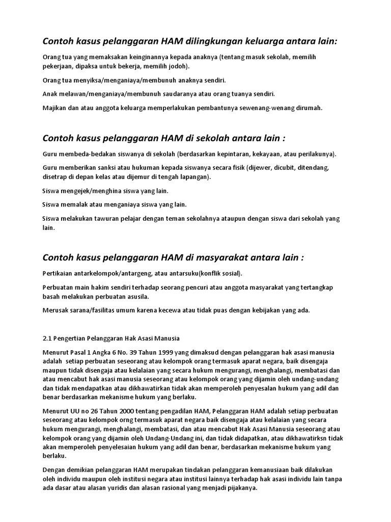 Contoh Kasus Pelanggaran Ham Di Keluarga Sekolah Masyarakat